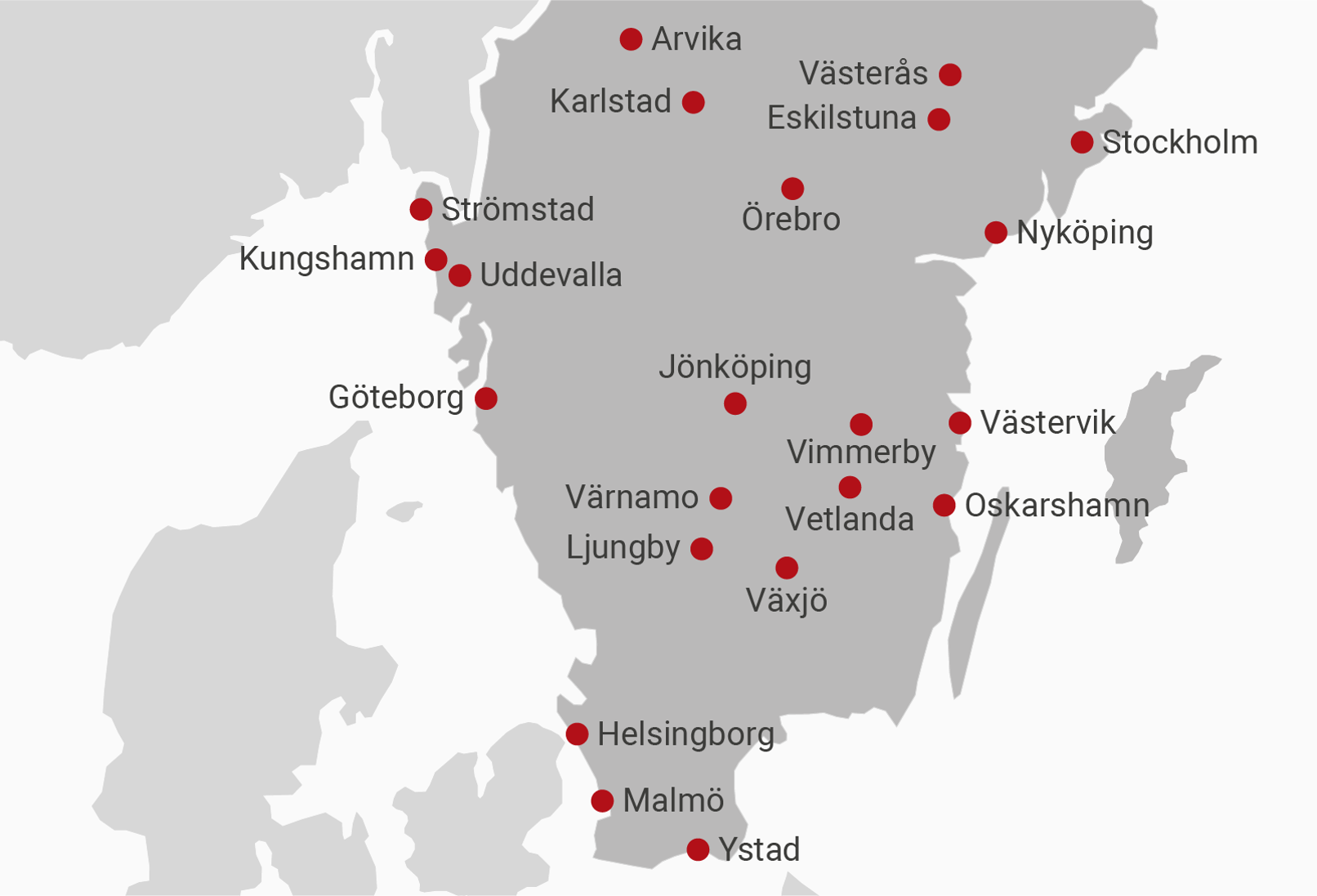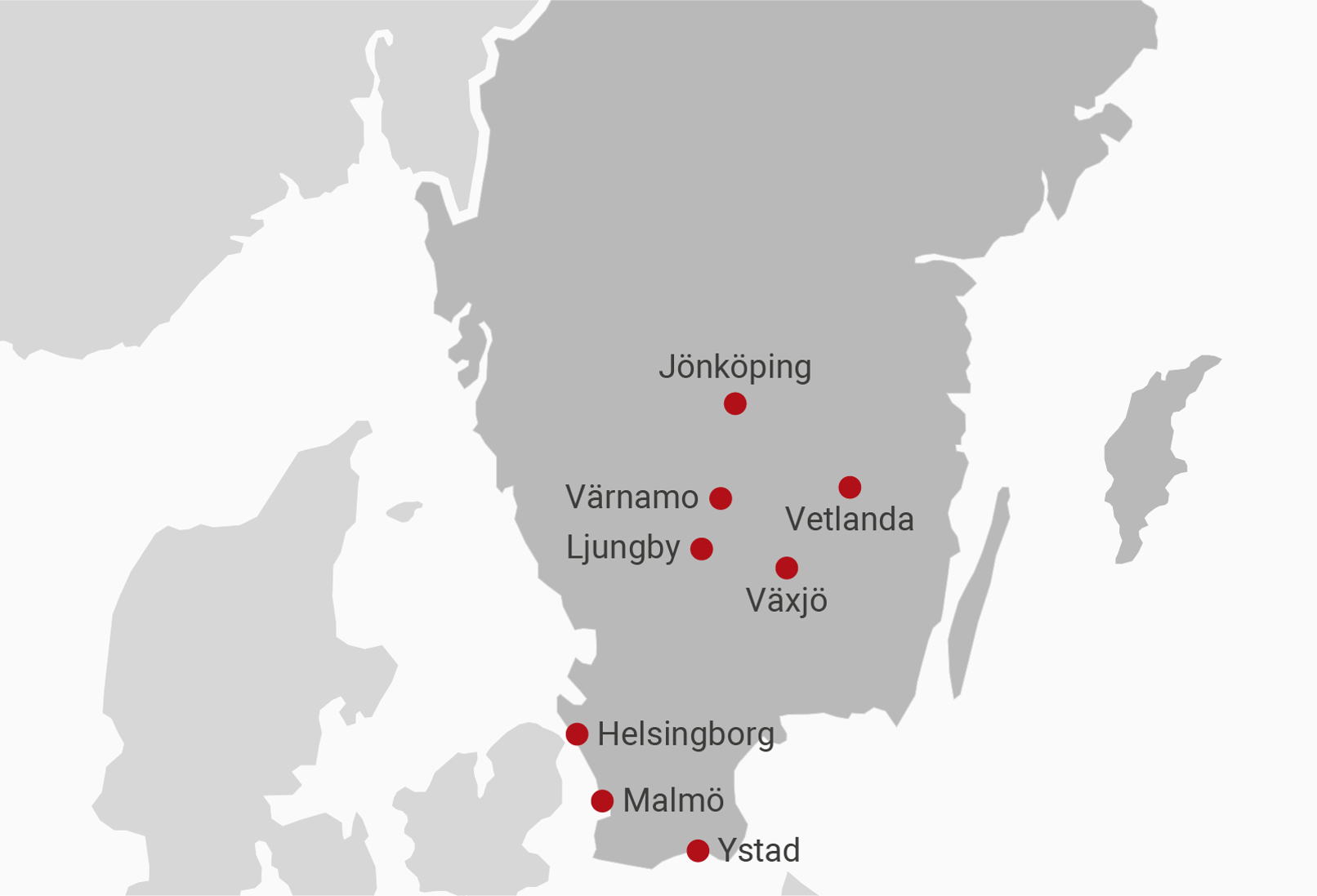 Vi har kontor på följande orter: Växjö, Ljungby, Värnamo, Vetlanda, Jönköping, Helsingborg och Malmö.