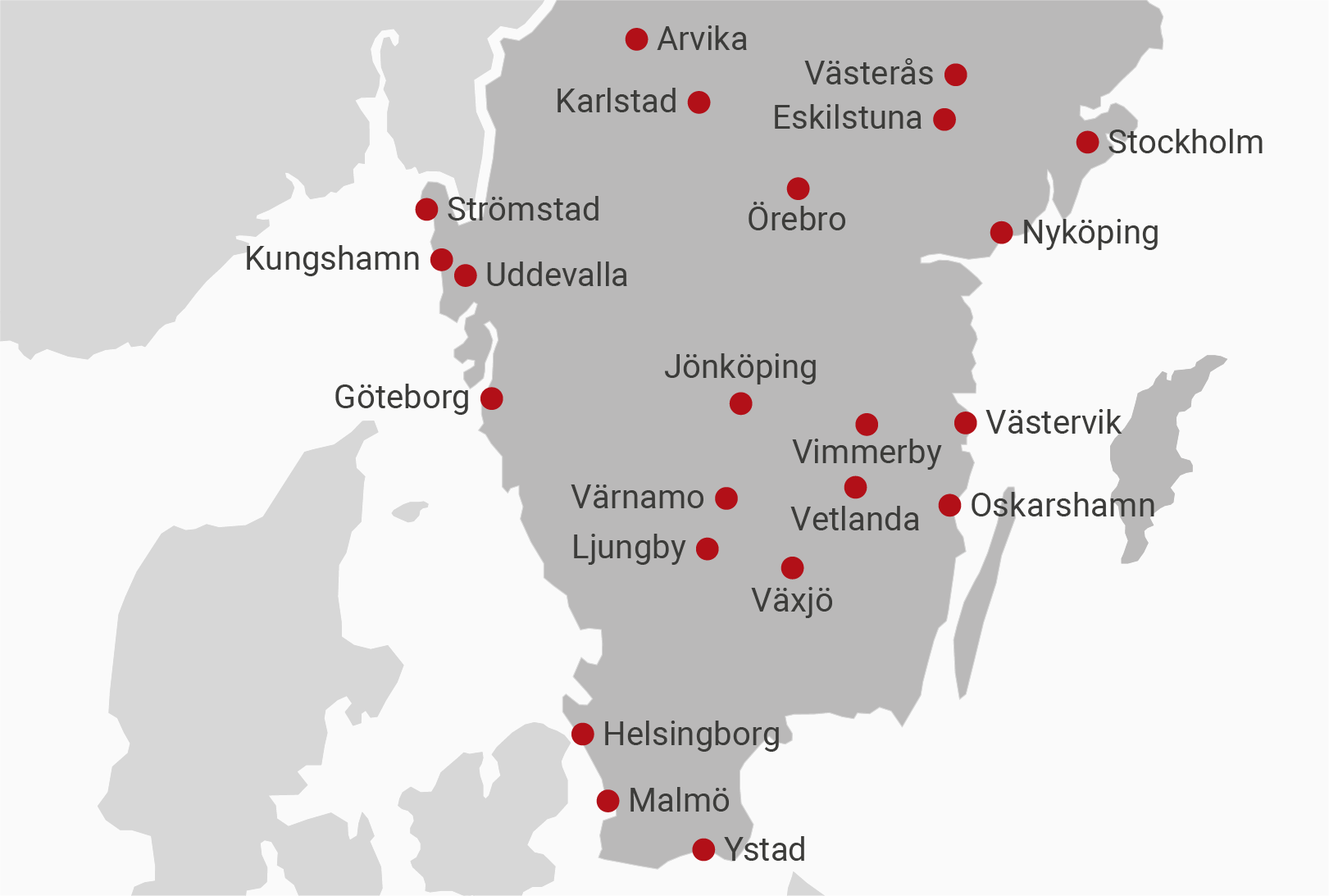 Vi har kontor på följande orter: Växjö, Ljungby, Värnamo, Vetlanda, Jönköping, Helsingborg och Malmö.